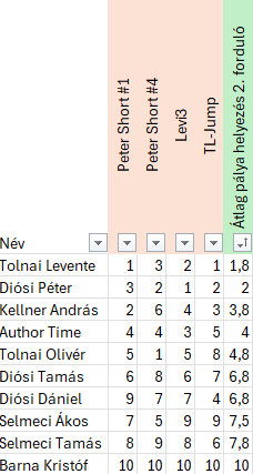 Eddig kissé másabb képet látunk az élmezőnyben, mint az első forduló végén. A Diósi Péter, Tolnai Levente és Tolnai Olivér hármashoz negyedikként Kellner András megérkezett. Péter és Levente rendkívül stabilak, átlagos helyezésük jelenleg így alakul: Péter 2 és Levente 1,8. Minden pályán dobogón vannak. Olivér a Peter Short #4-en jelenleg a leggyorsabb, viszont a többi pályán az 5. és 8. helyezéseket foglalja el, ami miatt a ranglistán Kellner András mögé került. Andris két mapon is dobogón van, ezzel jelenleg a forduló harmadik legeredményesebb versenyzője.