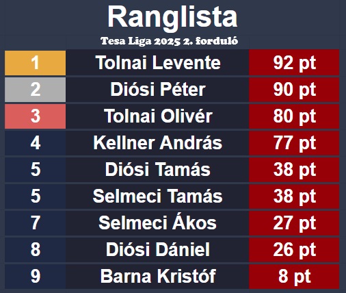 Véget ért a Tesa Liga 2025-ös kiadásának második fordulója. Többször cikkeztünk és spekuláltunk az eredményeket illetően. Ezen várakozások és esélylatolgatások nem álltak messze a valóságtól. Most nézzük meg a második forduló eredményét konkrét számokban: